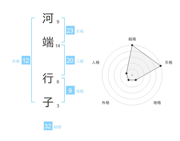河端 行子さんの総格は32画の5点!