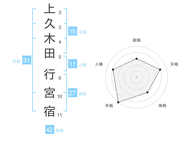 上久木田 行宮宿さんを姓名の画数から五運を鑑定