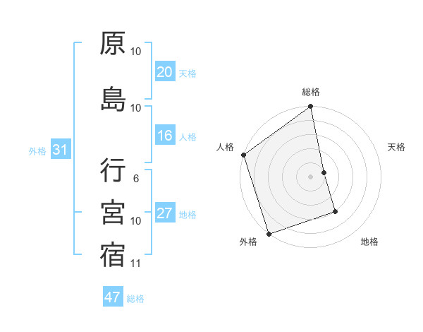 原島 行宮宿さんを姓名の画数から五運を鑑定
