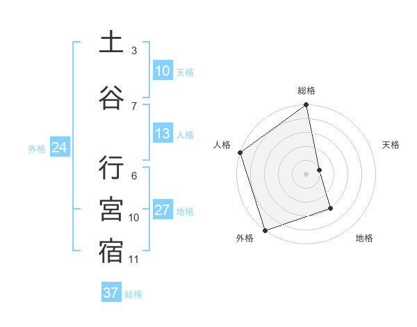 土谷 行宮宿さんを姓名の画数から五運を鑑定
