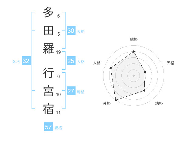 多田羅 行宮宿さんを姓名の画数から五運を鑑定
