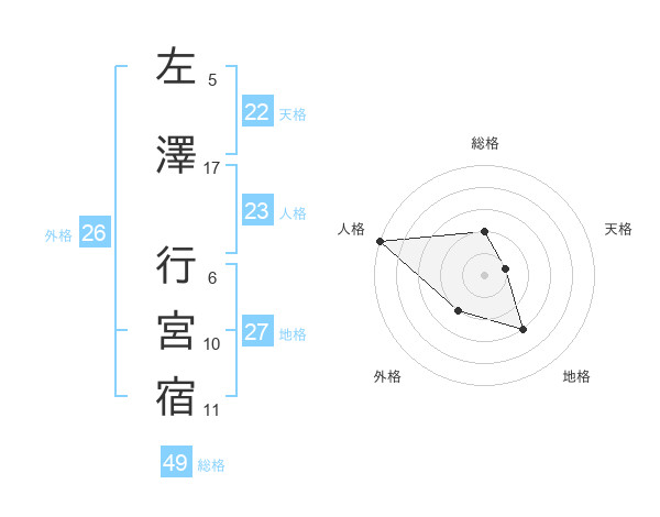 左澤 行宮宿さんを姓名の画数から五運を鑑定