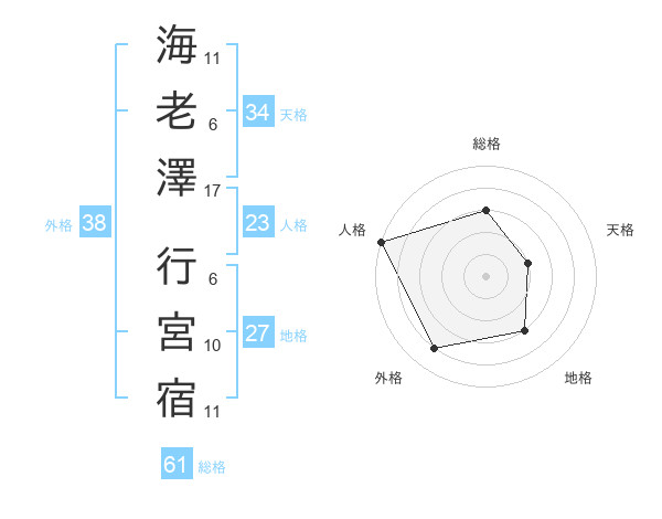 海老澤 行宮宿さんを姓名の画数から五運を鑑定