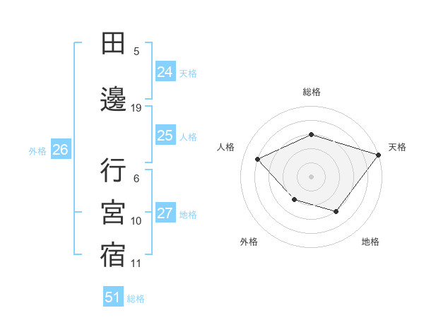 田邊 行宮宿さんの総格は51画の3点!