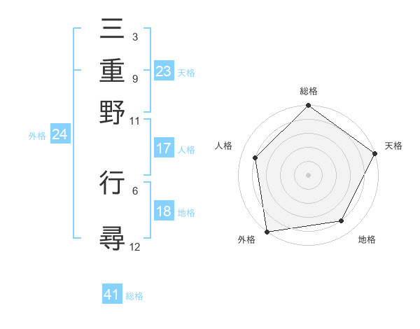 三重野 行尋さんの総格は41画の5点!
