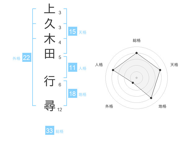 上久木田 行尋さんの総格は33画の4点!