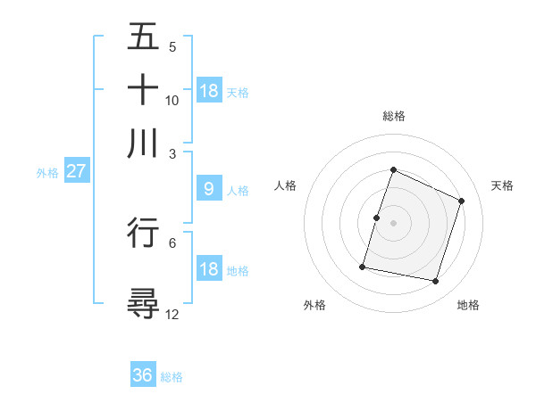 五十川 行尋さんの総格は36画の3点