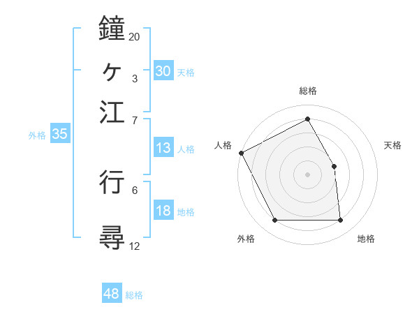 鐘ヶ江 行尋さんの総格は48画の4点