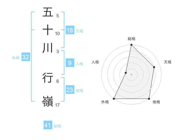 五十川 行嶺さんを姓名の画数から五運を鑑定
