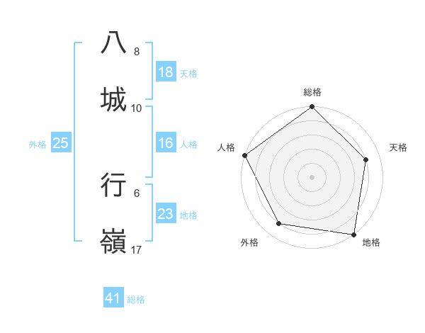 八城 行嶺さんを姓名の画数から五運を鑑定