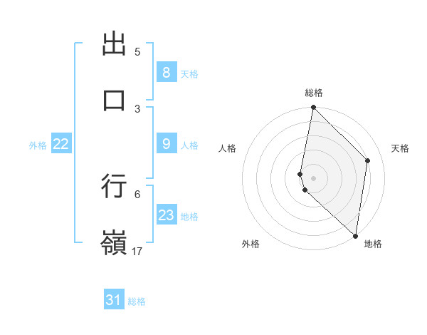 出口 行嶺さんを姓名の画数から五運を鑑定