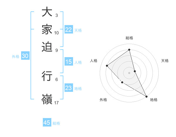 大家迫 行嶺さんを姓名の画数から五運を鑑定