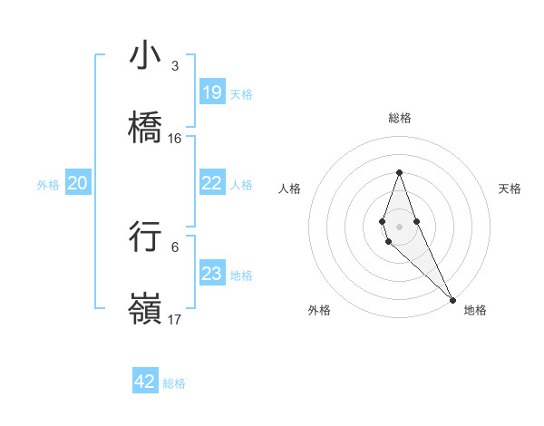 小橋 行嶺さんを姓名の画数から五運を鑑定