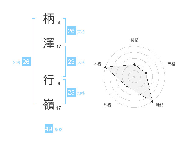 柄澤 行嶺さんの人格は23画の5点!