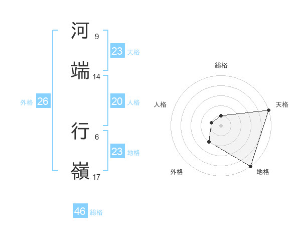 河端 行嶺さんを姓名の画数から五運を鑑定