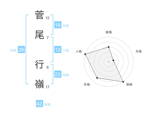 菅尾 行嶺さんの地格は23画の5点!