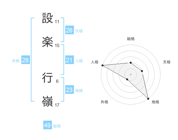 設楽 行嶺さんを姓名の画数から五運を鑑定