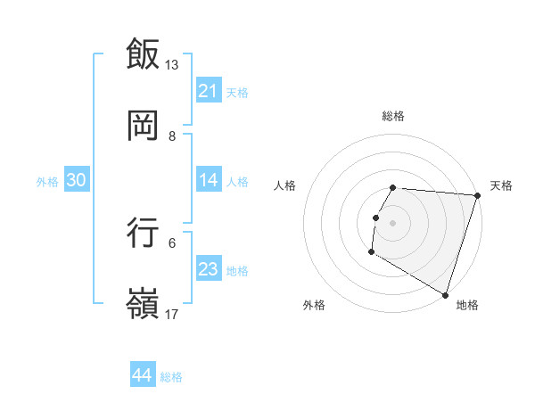 飯岡 行嶺さんを姓名の画数から五運を鑑定