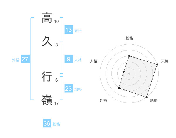 高久 行嶺さんを姓名の画数から五運を鑑定