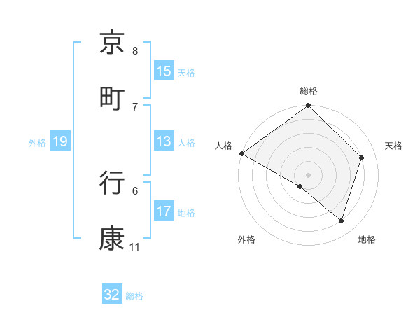 京町 行康さんの総格は32画の5点!