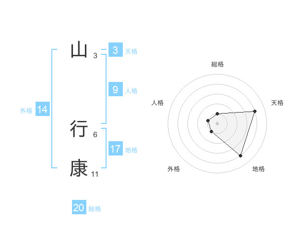山 行康さんの総格は20画の1点!