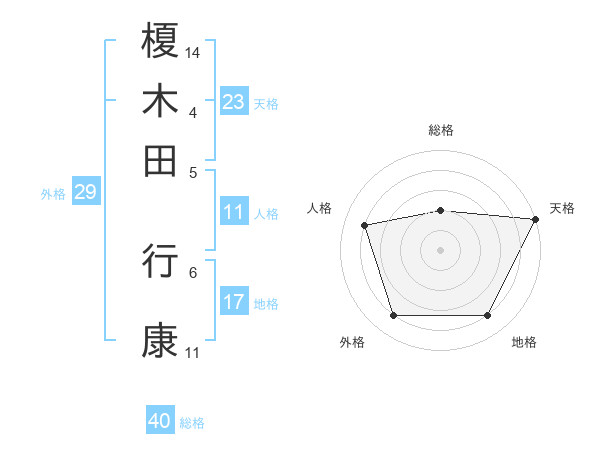 榎木田 行康さんを姓名の画数から五運を鑑定