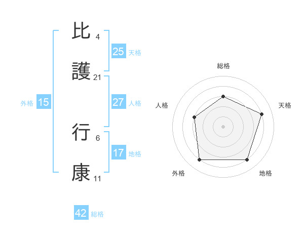 比護 行康さんの総格は42画の3点!