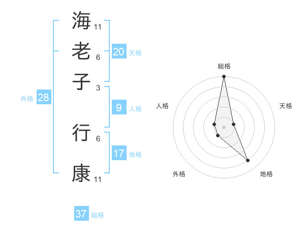 海老子 行康さんの総格は37画の5点!