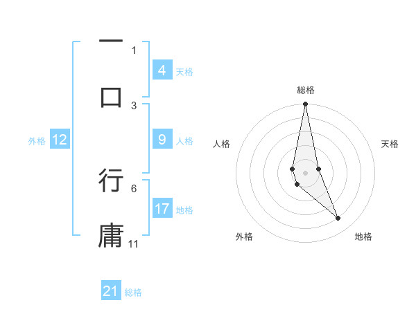 一口 行庸さんの総格は21画の5点!