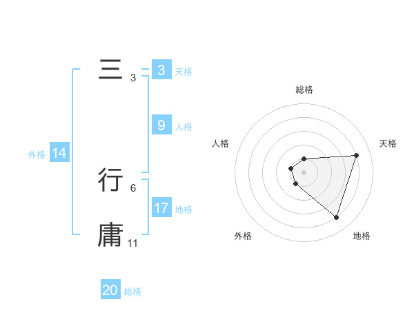三 行庸さんの総格は20画の1点!