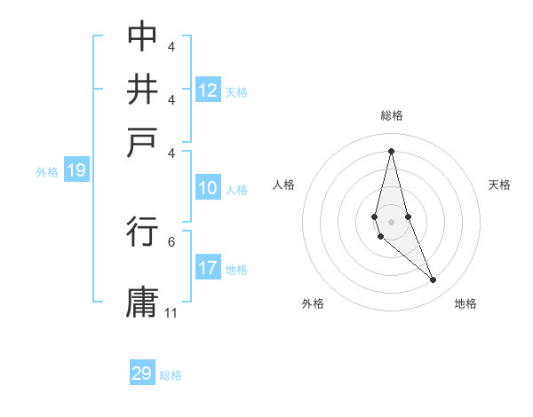 中井戸 行庸さんを姓名の画数から五運を鑑定