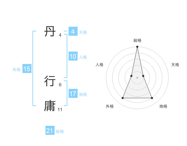 丹 行庸さんの総格は21画の5点!