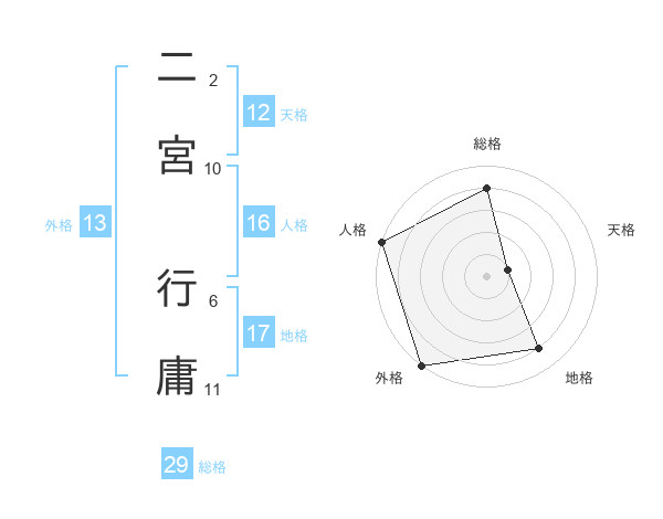 二宮 行庸さんを姓名の画数から五運を鑑定