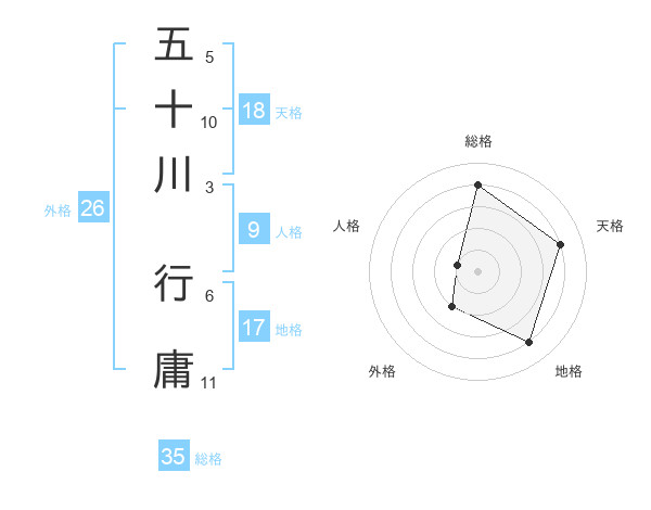 五十川 行庸さんの総格は35画の4点!