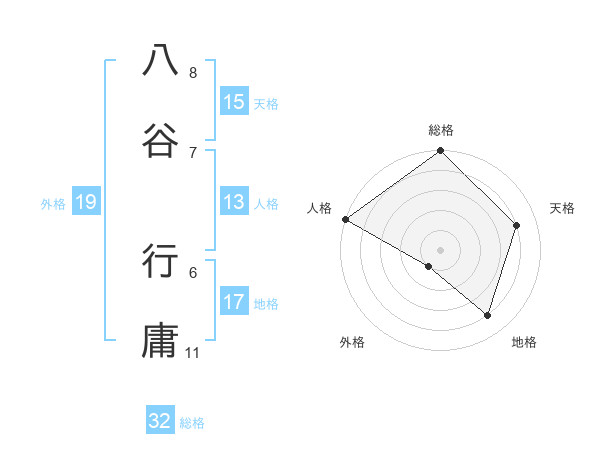 八谷 行庸さんの総格は32画の5点!