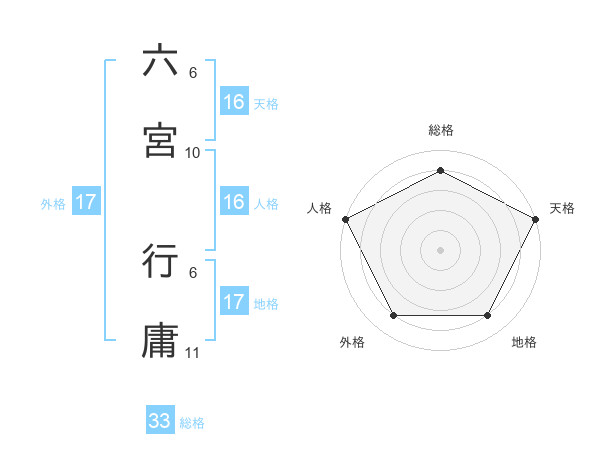 六宮 行庸さんの総格は33画の4点!