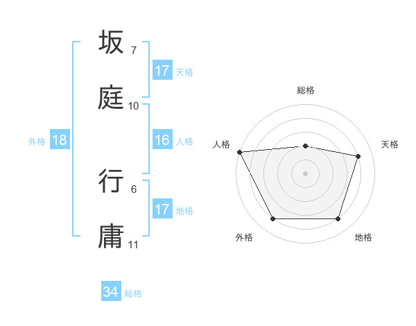 坂庭 行庸さんの総格は34画の2点!