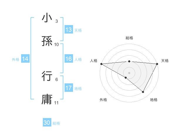 小孫 行庸さんの総格は30画の2点!