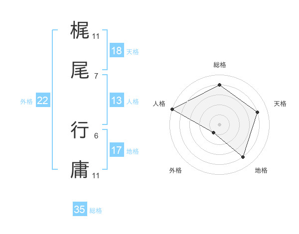 梶尾 行庸さんを姓名の画数から五運を鑑定