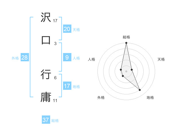 沢口 行庸さんの総格は37画の5点