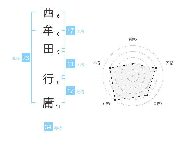 西牟田 行庸さんを姓名の画数から五運を鑑定