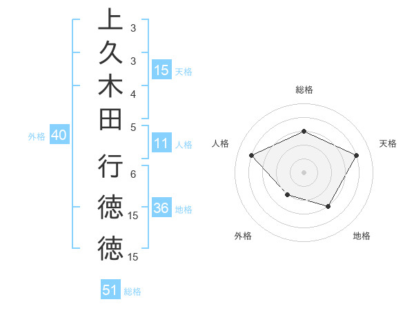 上久木田 行徳徳さんを姓名の画数から五運を鑑定