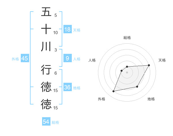五十川 行徳徳さんの総格は54画の1点!