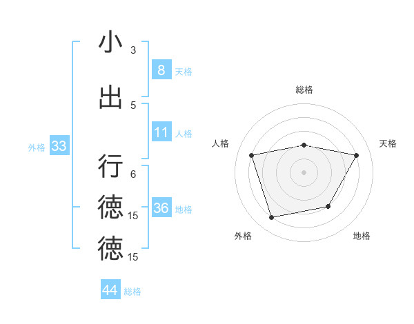 小出 行徳徳さんを姓名の画数から五運を鑑定