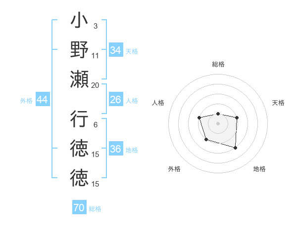 小野瀬 行徳徳さんを姓名の画数から五運を鑑定