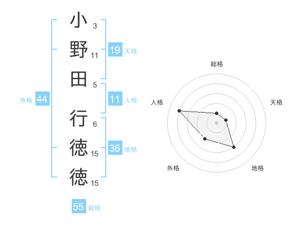 小野田 行徳徳さんの総格は55画の1点!
