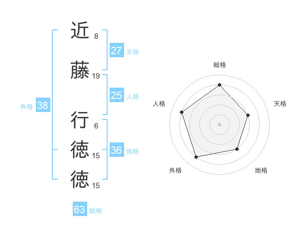 近藤 行徳徳さんの総格は63画の4点!