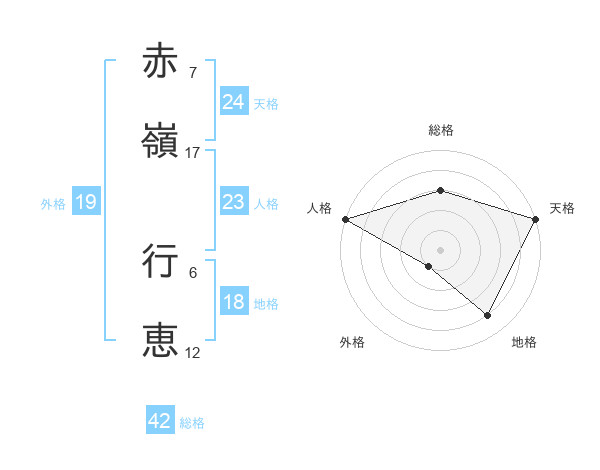 赤嶺 行恵さんを姓名の画数から五運を鑑定