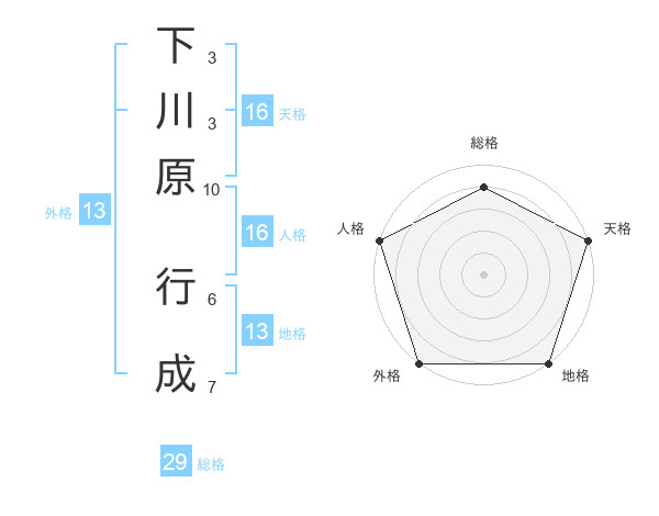 下川原 行成さんの総格は29画の4点!