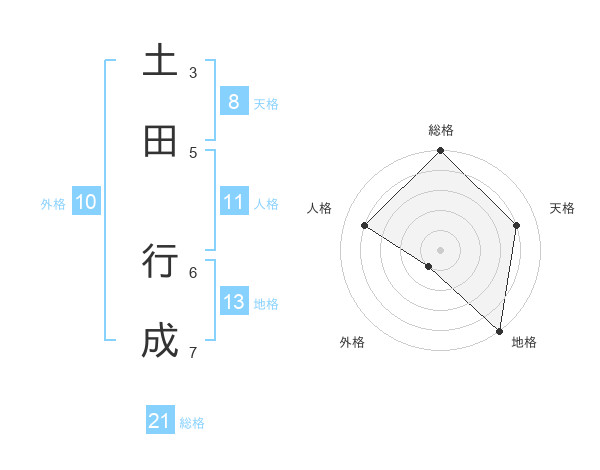 土田 行成さんの総格は21画の5点!
